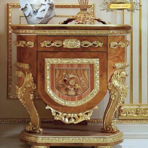 - SUBLIMAGE_Visions de Allure Không chỉ là một bộ sưu tập đồ nội thất theo thiết kế nguyên bản với uy tín vô song. Đó là nghệ thuật làm cho không gian trở nên hùng vĩ và độc đáo. Các sắc thái ấm áp của cây nho và tro ô liu hòa quyện với những hạt gỗ hồng mộc mãnh liệt. Đồ khảm được chế tác tinh xảo làm tăng màu sắc tự nhiên của gỗ phong. Các chi tiết chạm khắc trang trí bằng khuôn vàng lá uốn lượn hấp dẫn trên nền gỗ nguyên khối. Cổng vòm nổi bật và thủ đô mạ vàng nổi